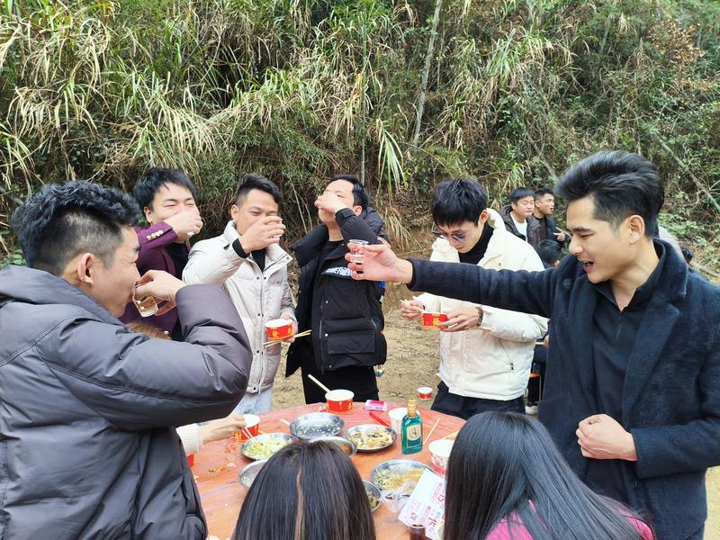 宴席当天,天还没亮,山冲就醒了。乡邻们闻讯而来,杀猪、择菜、切肉、端盘、洗碗,自发组成流水线。金本茂的亲戚,有的放下家里装修的活计,有的连跑丢的牛都顾不上去找,全都赶来帮忙。