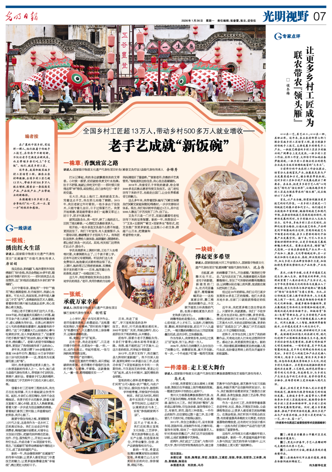 《光明日报》记录的是向下扎根的温度——余锦秀让技艺在乡土间传承,让非遗“活”在百姓的日常生活中。她的故事里,蕲艾是谋生的手艺,是温暖的关怀,是改变个体命运的力量。