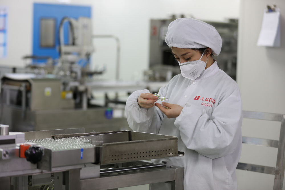 这是2020年4月22日在湖北宜昌一家药品生产企业拍摄的质检工序场景。该企业是国内最大的麻醉药品定点研发企业,研发生产的麻醉药品在国内占据60%以上市场份额。
