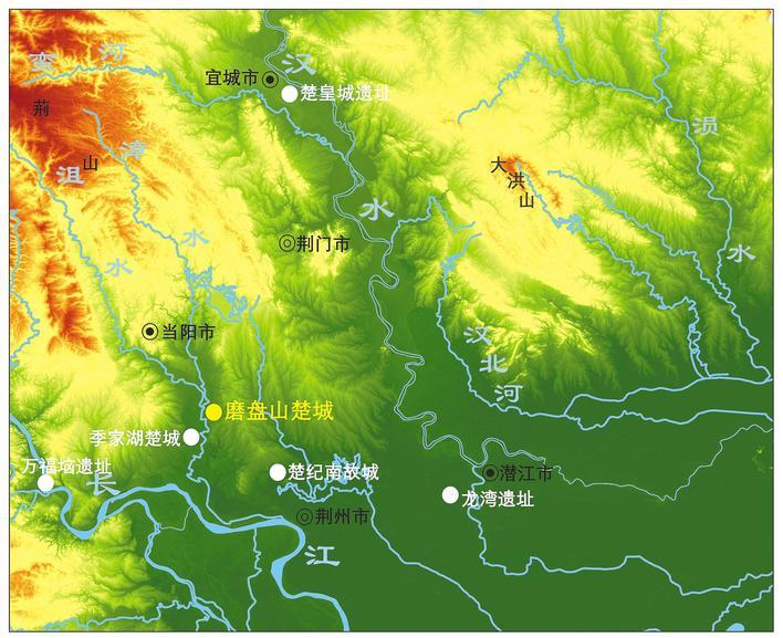 当阳市磨盘山楚城遗址位置示意图。(均为湖北省文物考古研究院供图)