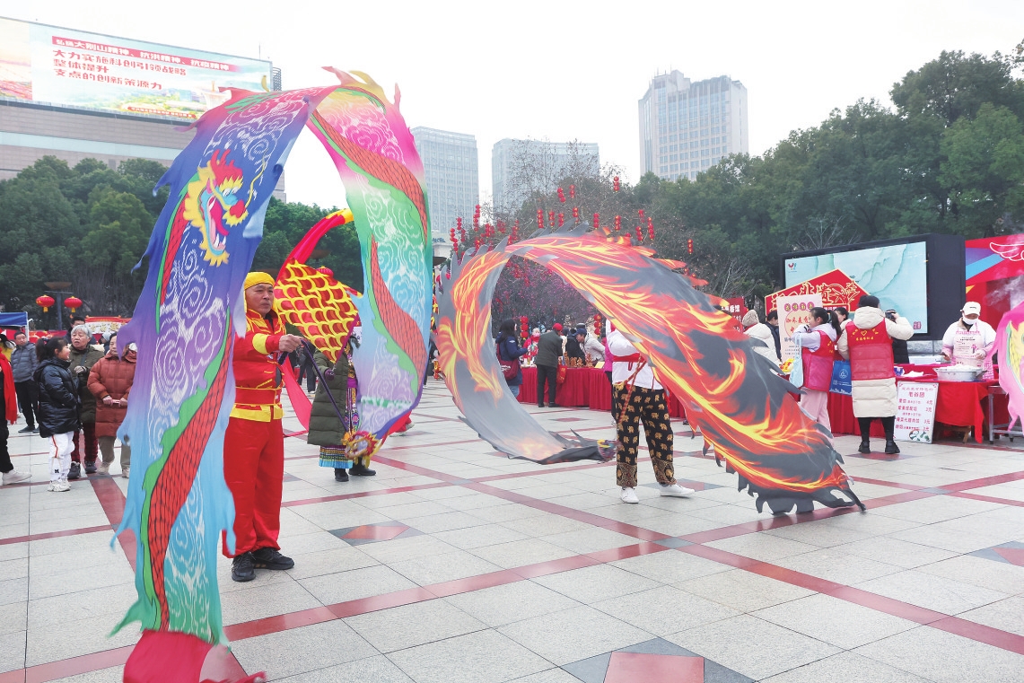 1月31日,2026年第十八届西陵庙会暨宜昌供销集市在夷陵广场开幕。活动现场,锣鼓喧天,传统舞狮等经典艺术表演轮番上演,歌舞《奔腾》、萌娃戏曲《巾帼英雄》等节目赢得掌声雷动。数千市民赏节目、品美食、乐购物,沉浸式体验庙会的热烈氛围。(记者吴延陵 摄)
