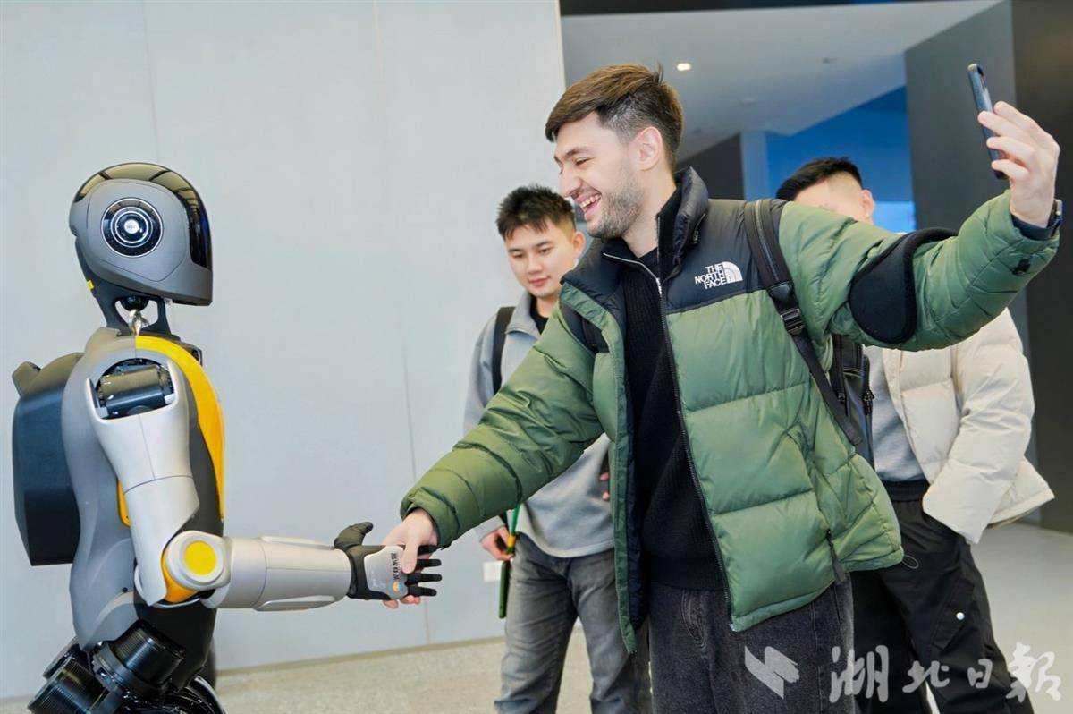 “你好,你见过老外吗?反正我是第一次这么近地见到机器人!”1月31日上午,“全球达人游中国”武汉站走进湖北省人形机器人创新中心,来自白俄罗斯的Valeria好奇地与汉产人形机器人握手互动、风趣调侃。