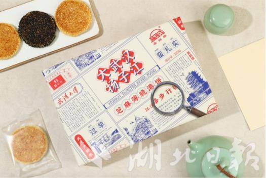 扬子江的文创芝麻薄脆港饼,设计简直“开了挂”。包装复刻了老报纸,黄鹤楼的水墨剪影铺展其上,指尖摩挲,仿佛能触摸到武汉的城市记忆。精选芝麻慢火烘焙,薄脆焦香,甜而不腻,一口下去,吃的是糕点,品的是百年故事和城市烟火。
