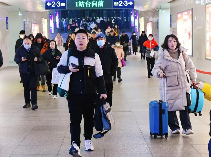 春运首日,荆州火车站迎来出行小高峰,但整体运行平稳有序。上午,站内人来人往,旅客们提着大包小包,脸上洋溢着归乡的期待。为应对客流,车站增派了工作人员和志愿者,在进站口、候车大厅等区域为旅客提供引导、咨询等服务。“工作人员帮我提行李,还告诉我怎么快速进站,太贴心了!”准备回老家过年的王女士说道。