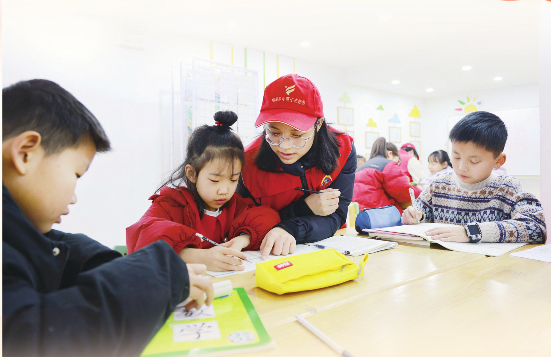 2月3日,伍家岗区伍家乡花溪路社区,大学生志愿者指导小朋友们完成假期作业。连日来,宜昌170余个“爱心托管班”在各地陆续开课,由青年志愿者和社区工作人员组成的爱心团队,为辖区少年儿童提供免费的课业辅导、安全和科普教育等公益服务,让孩子们在陪伴中收获知识与快乐,度过一个安全且充实的假期。(记者黄翔 摄)