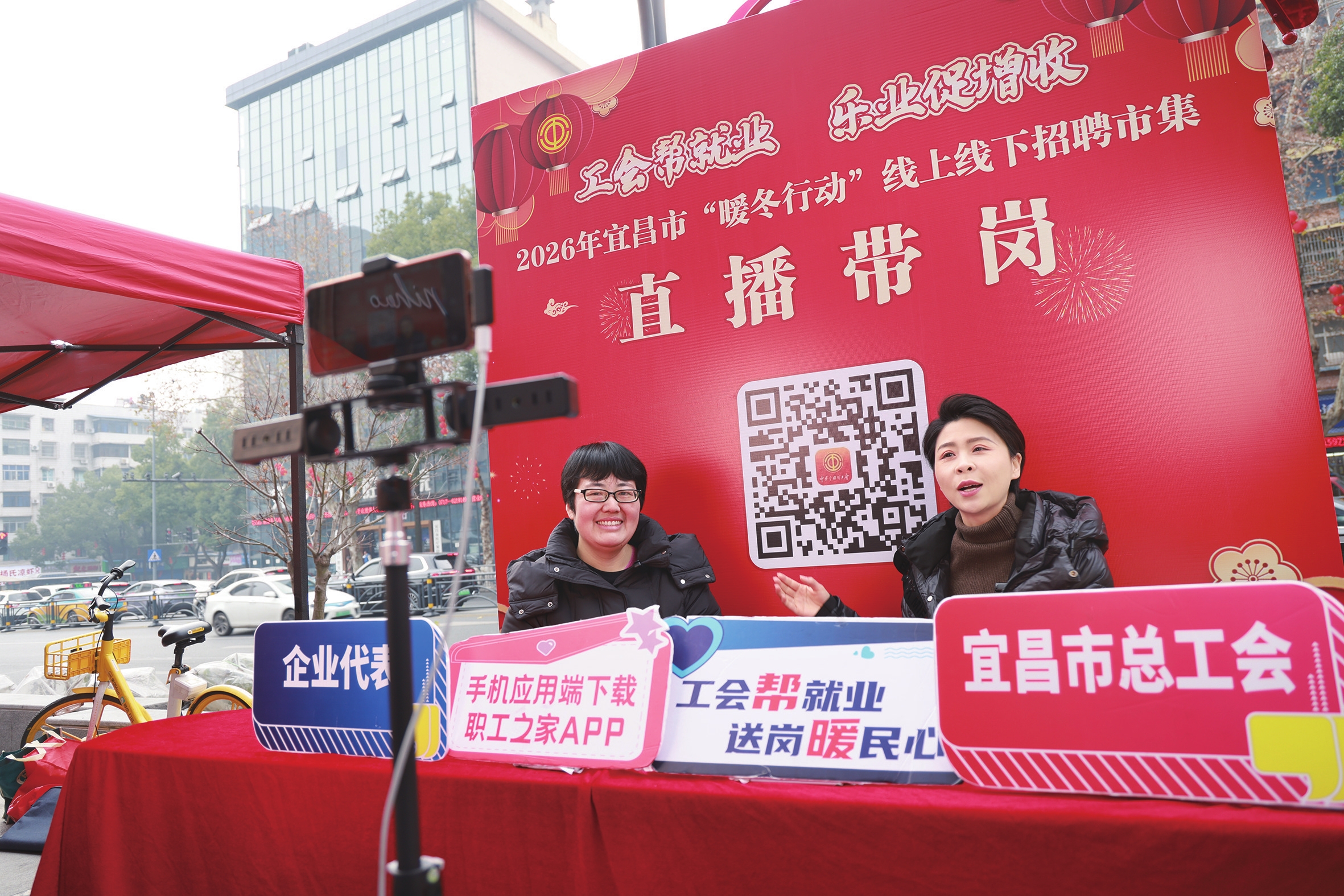 当日,宜昌市“暖冬行动”招聘会在宜昌城区星光天地广场举办。现场以“线上+线下”联动模式开展系列就业服务,精准对接企业用工与重点群体就业需求,助力新春稳就业“开门红”。据了解,1月至3月,全市计划开展线上线下招聘会214场,把政策咨询、职业指导、岗位匹配的一站式服务送到群众家门口。(记者黄翔 摄)