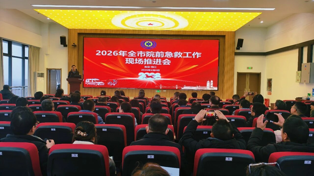 2月6日,2026年宜昌市院前急救工作现场推进会在枝江召开。各县市区卫生健康局分管领导及医政股负责人、急救中心主任,城区120网络医院分管副院长、医务科科长、急救站主任,市院前急救质控中心、非急救转运中心等相关人员100余人参会。