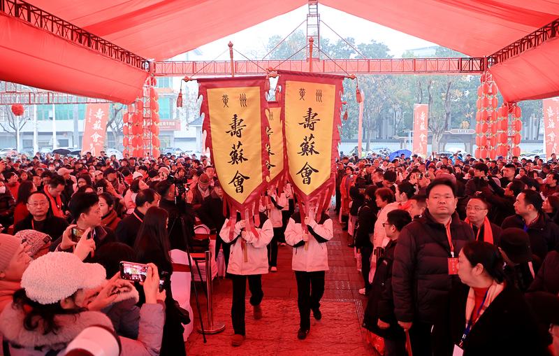 “咚——咚——咚——”击鼓鸣钟,献花奉茶……2月6日上午9时许,寿苏仪式在厚重的鼓声中庄重启幕。
