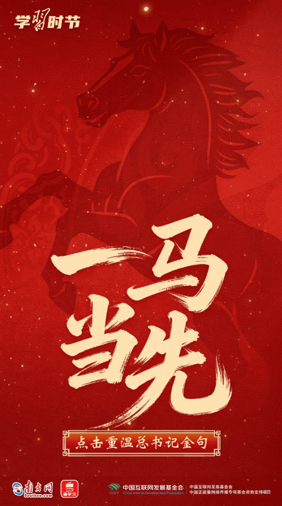 习近平总书记多次用“龙马精神”“马到功成”“一马当先”等耳熟能详的成语,向全国各族人民送上最美好的新春祝福,寄予奋进向上的殷殷嘱托。马年新春,来接收总书记的祝福和寄语,一起策马扬鞭,奔向更美好的明天!