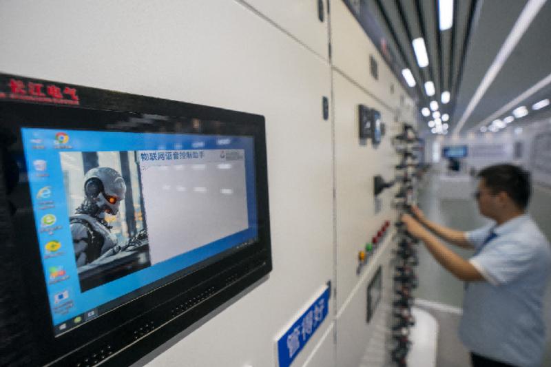 工程师正通过语音指令测试新一代智能电气柜。湖北日报 魏徕 摄
