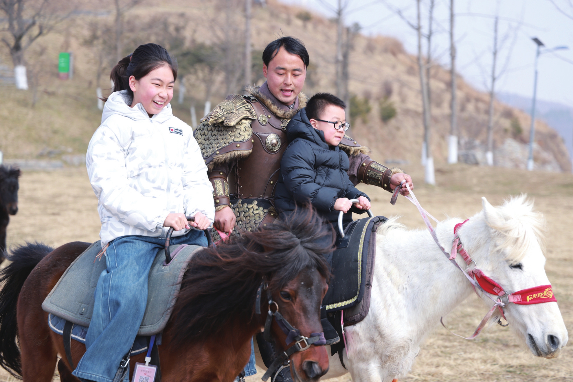 孩子们在百里荒景区体验骑马乐趣。
