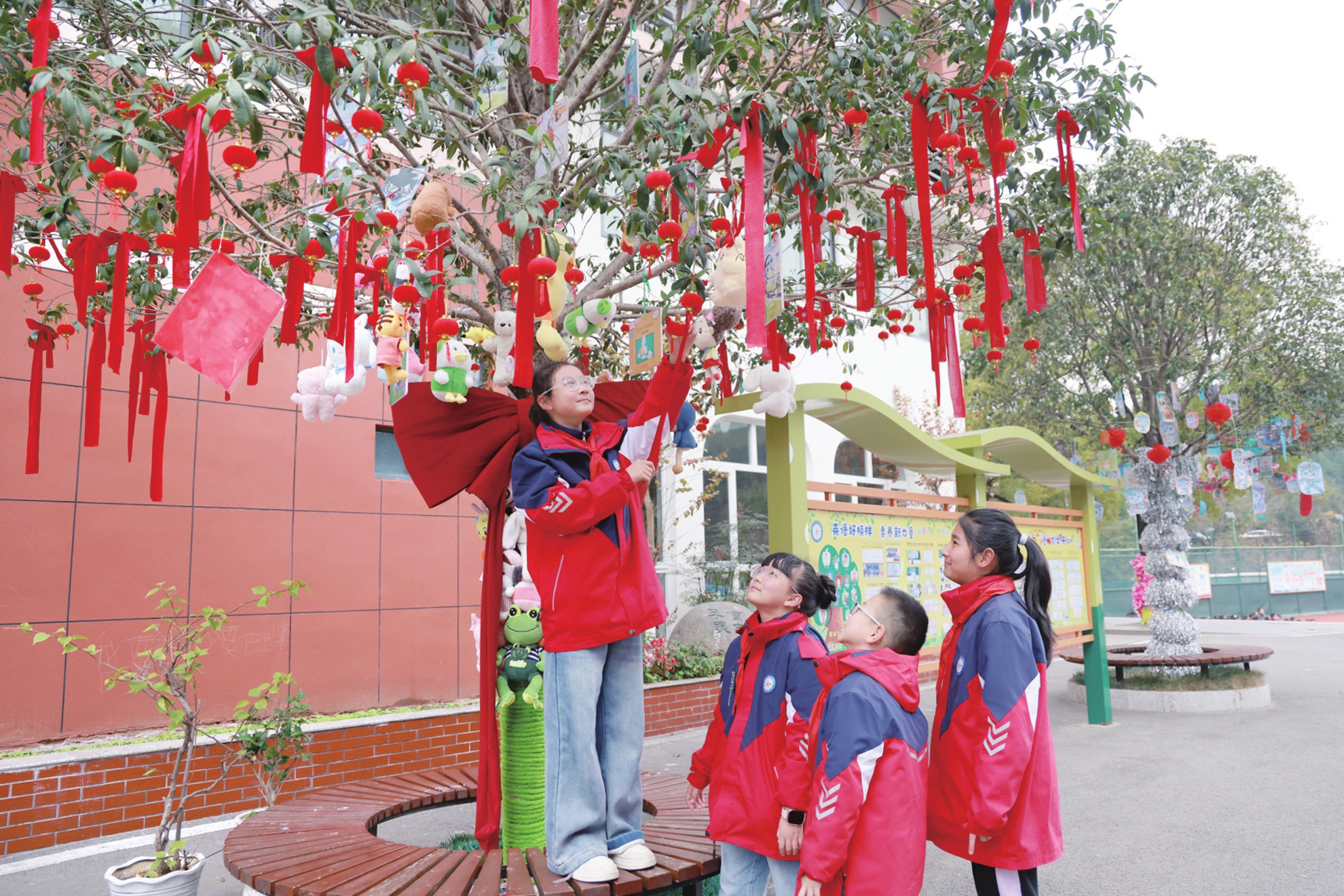 伍家岗区外国语小学,孩子们把校园装扮得喜气洋洋。