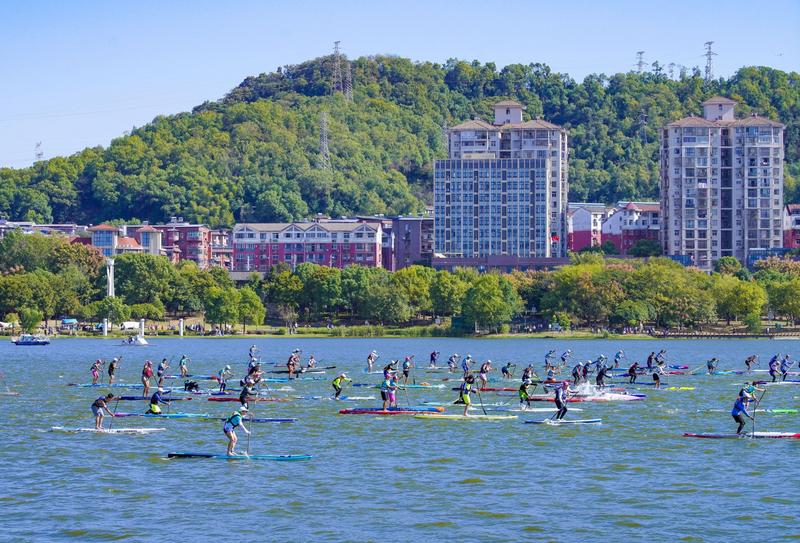 2025年国庆长假,磁湖未苏湾水域人声鼎沸。500余名国内外桨板运动员与万余名游客齐聚,参加2025黄石国际桨板邀请赛暨首届水上嘉年华。融合水上表演、特色商户展示、美食体验的“赛、游、购、娱”一体化服务体系,让这片取意苏轼诗词的诗画小镇,迸发出青春的激情。据统计,赛事带动全市景区游客量同比增长20.3%,文旅消费总额提升18.6%。