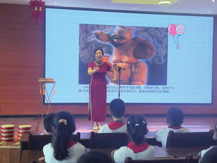 鸡毛掸子扫过一面书鼓,这是漳河大鼓表演的主要乐器。2025年,黎红燕和团队6次走进学校,在民俗博物馆现场开展教学30多场。利用漳河大鼓、三句半等文艺形式开展理论宣讲80余场,创作宣讲作品5件。“不少人是听着漳河大鼓长大的,既热闹又好听,把理论政策融入进去他们就听得懂。”