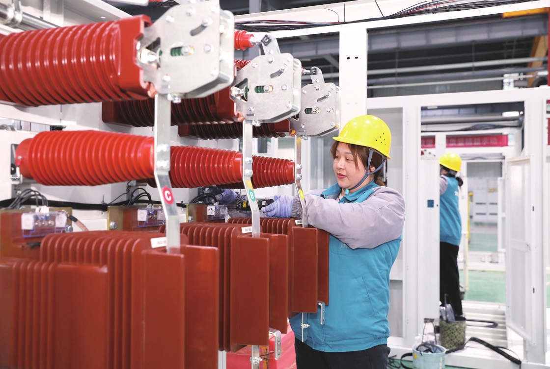 2月26日,宜昌特锐德电气有限公司员工正在进行高压开关互感器二次线连接。今年以来,该公司订单量大幅增长,生产计划已排至7月,目前已实现“复工即满产”的火热状态。(记者严晓冬、通讯员熊亮 摄)