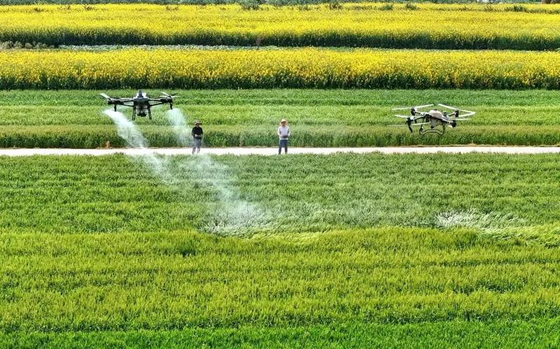 ▲枝江市百里洲镇,无人机“下田”保春耕。付蓓蓓 摄