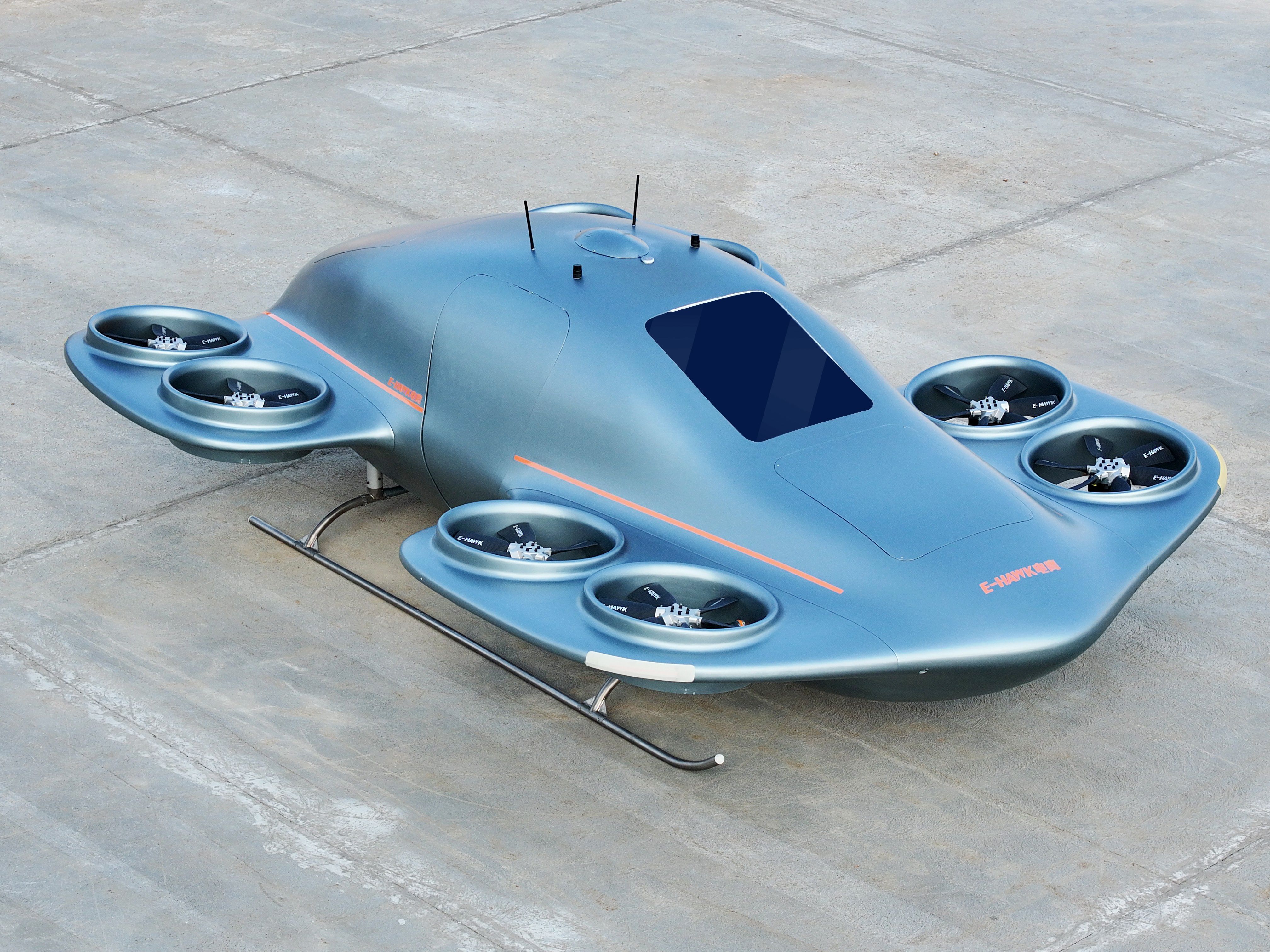 电鹰科技董事长蔡晓东介绍,起初他们提出想打造一款在城市中自由起降和穿梭,且低噪声、高安全性的载人飞行器时,有航空航天专业的专家表示“不可能”,经过6年打磨,他们真的做出来了。