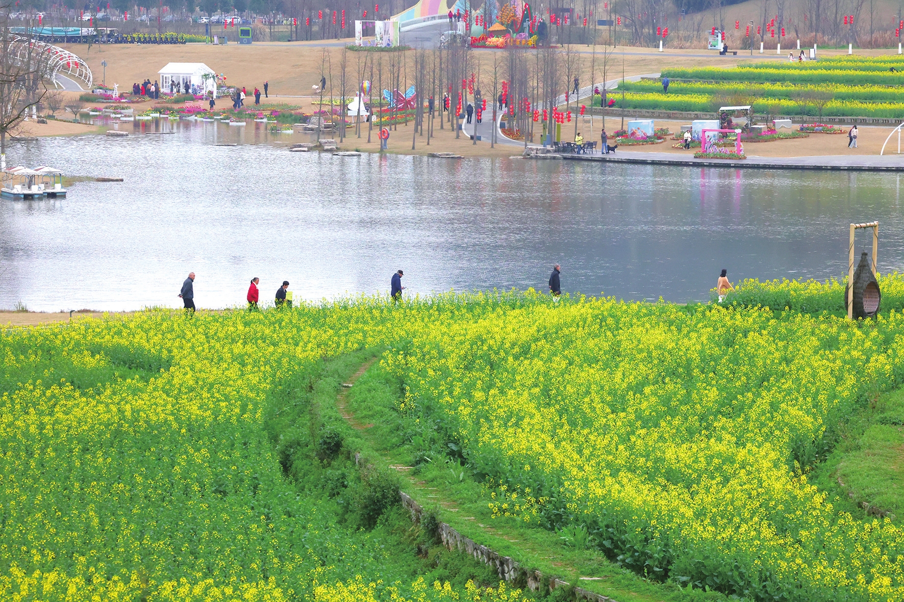 3月2日,位于点军区的卷桥河湿地油菜花盛开。春意盎然,花海一片生机勃勃,游人行走其间,犹如一幅美丽的画卷。(记者吴延陵 摄)