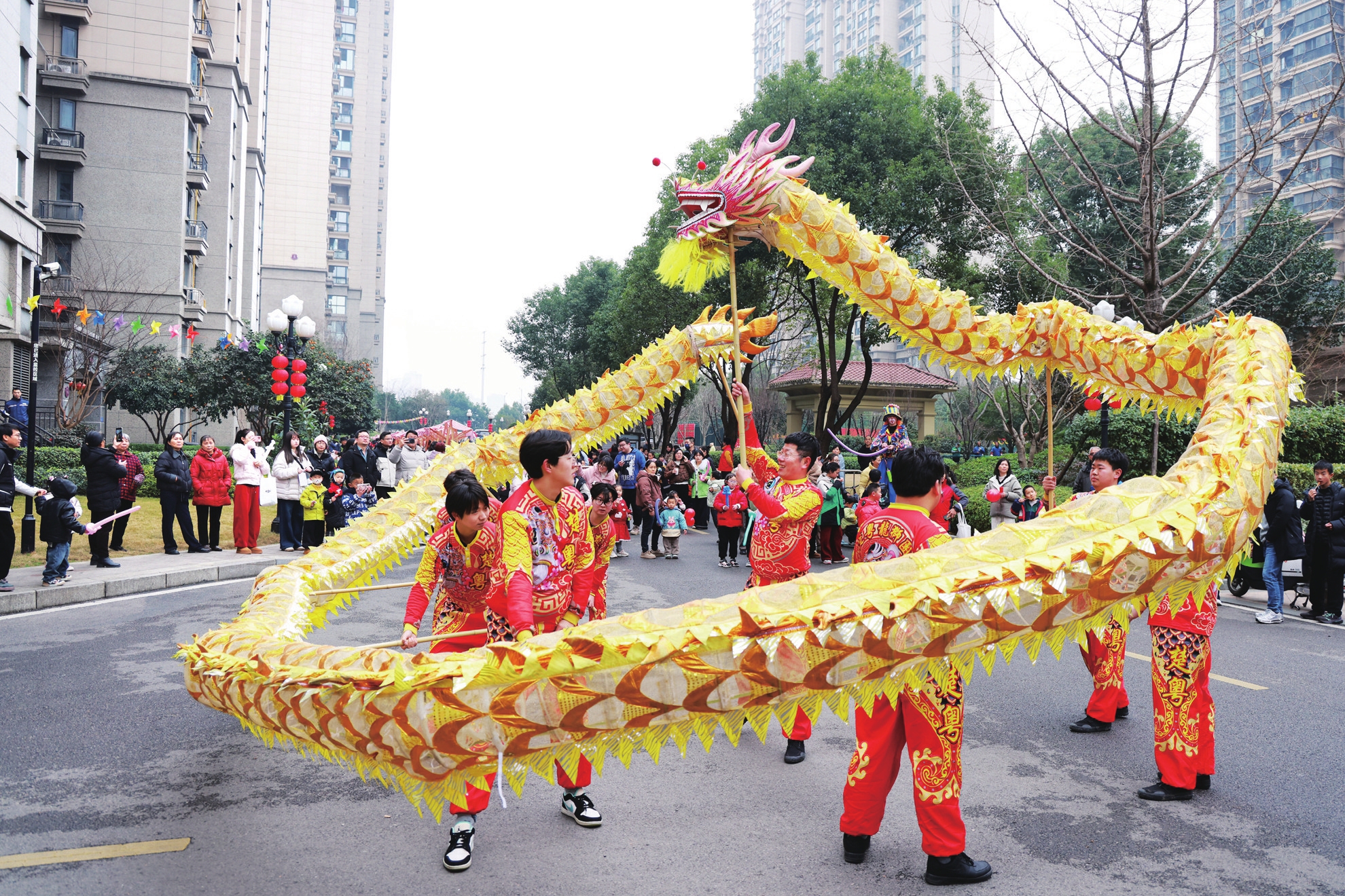 元宵佳节到来,宜昌各地纷纷举办传统舞龙民俗活动,营造喜庆祥和的节日氛围。图为伍家岗区伍家乡花溪路社区开展舞龙灯迎元宵活动,将祝福送到群众家门口。(记者黄翔 摄)