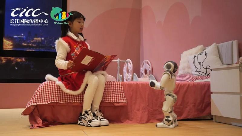 机器人给小女孩读绘本