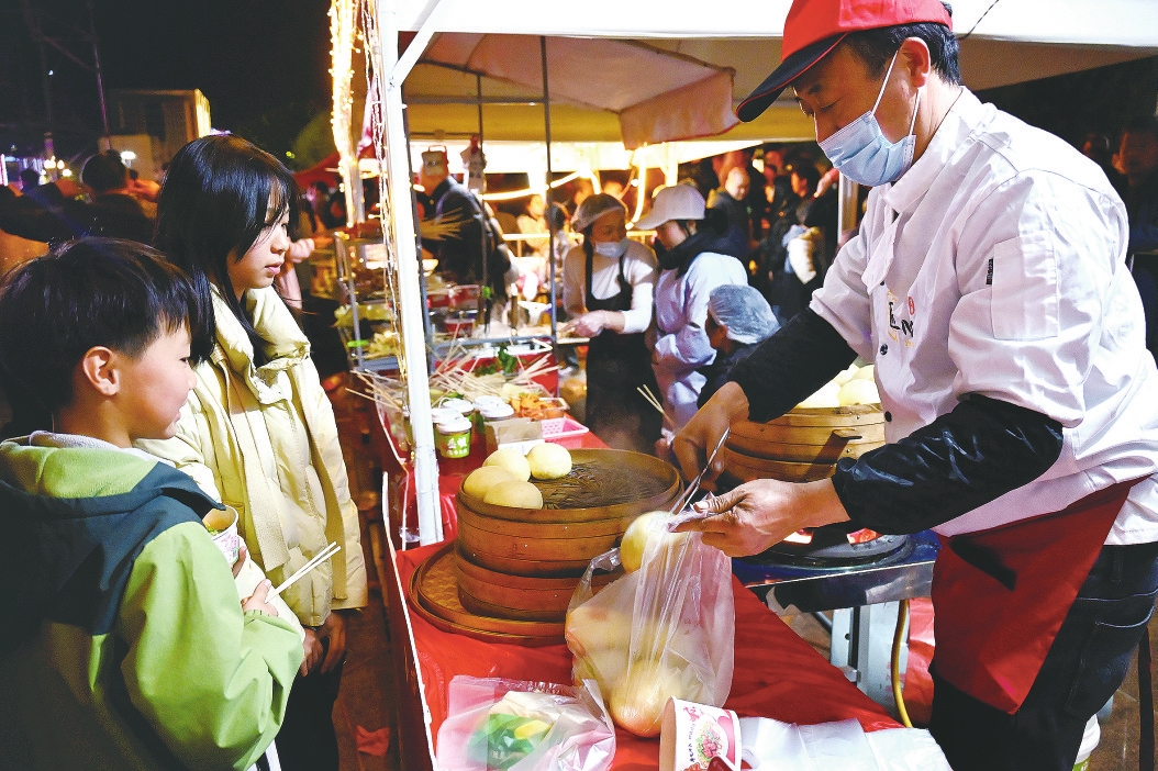昭君广场一侧,“马如游龙·非遗记忆”文旅集市连日来人气火爆。市级非遗兴山毛狗团子、香溪醪糟……热气腾腾的美食香气四溢,吆喝声、欢笑声汇聚成浓浓的“烟火气”,让人们在看巡游、赏灯会之余,也能品味地道的家乡味道。
