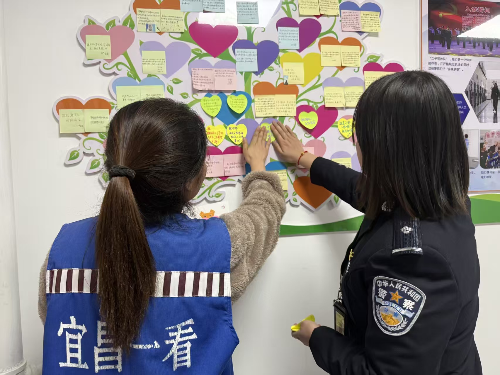 宜昌市看守所民警联合村委会走访未成年在押人员家庭,送去生活物资,传递家书与亲情期盼;开展心理团辅和手工制作,帮助在押人员舒缓情绪、释放压力;设置“心语星愿”心愿墙,搭建情感宣泄平台;组织观看励志影片《向阳花》,以光影激励她们坚定改造信心。