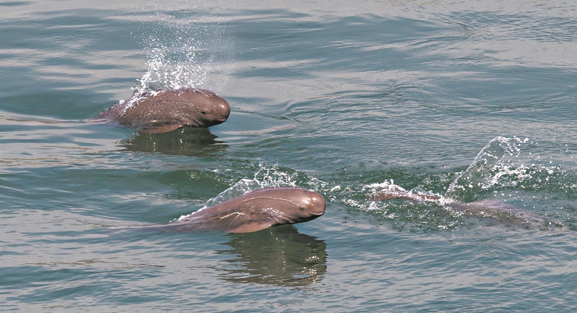 (“微笑天使”江豚在长江葛洲坝以下江段逐浪嬉戏)