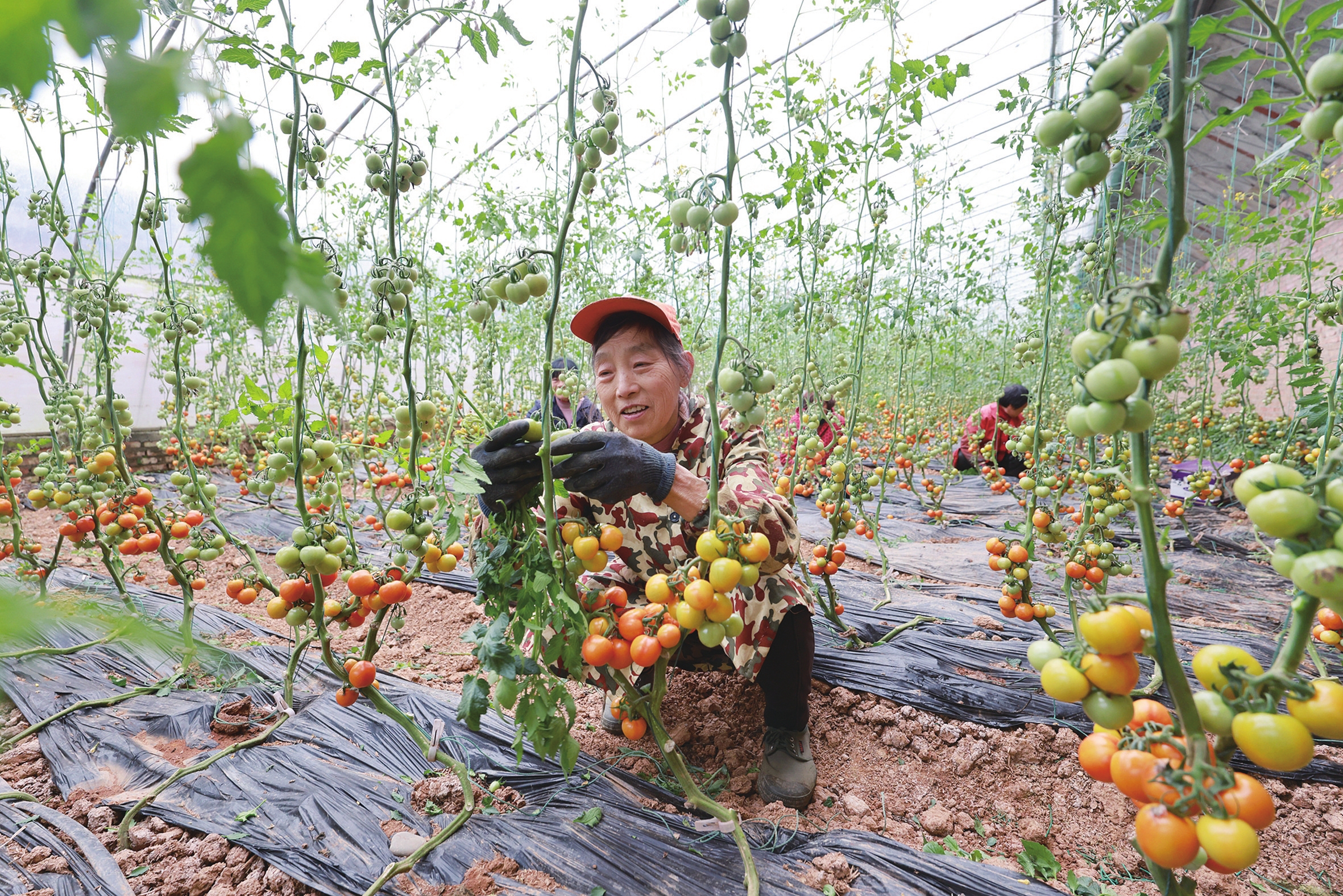3月6日,农户正忙着养护“水果”小番茄。春回地暖,万物复苏。眼下在夷陵区鸦鹊岭镇嘉馥农业基地,农户们正紧张地进行着春耕备耕工作。与此同时,部分错峰种植的果蔬即将迎来收获期,“春耕”撞上“春收”,一派人勤春早的景象。(记者黄翔、通讯员岳黎 摄)