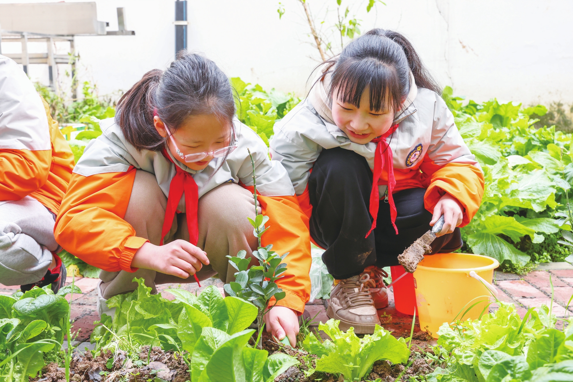 3月9日,西陵区得胜街小学开展“植一抹新绿,绘万里春光”植树节实践活动。孩子们在校园里植下新苗,不仅为环境增添了一抹绿色,更在心中种下了责任与希望的种子。(记者周卓然、通讯员王青 摄)