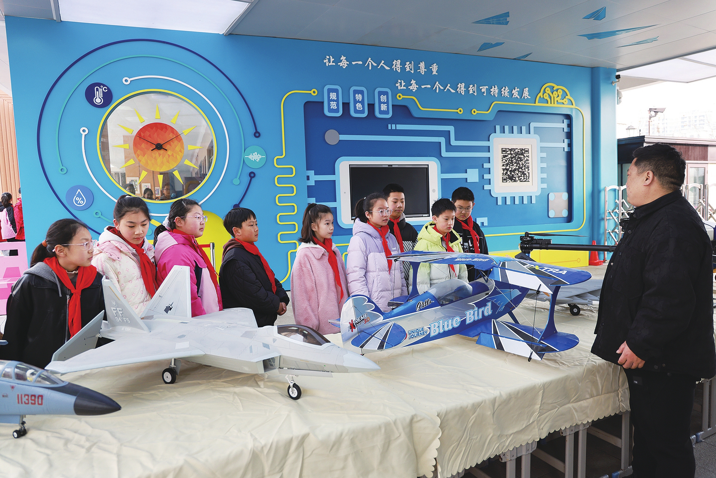 3月9日,伍家岗小学开展航空科普进校园活动。孩子们在老师指导下了解航空模型知识,通过趣味讲解和互动体验,近距离感受航空魅力,在心中播下热爱科学、追逐航天梦想的种子。(记者黄翔、通讯员向倩 摄)