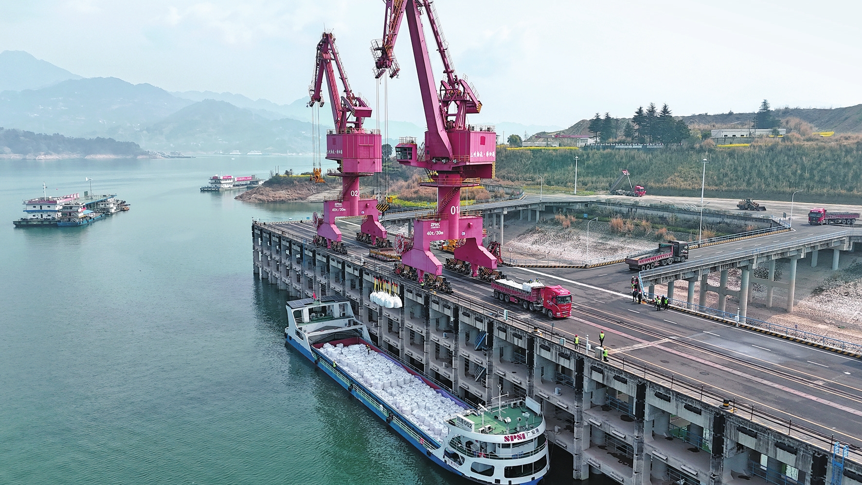 本批出口化肥原料将经由“水公水”翻坝转运模式出港:货物在秭归港完成装卸后,先通过公路转运至下游宜都港,再经水运抵达镇江港口,最终销往国际市场。整个作业过程实现了“安全、高效、零差错”的目标,为三峡库区农资产品出口构建了一条稳定、经济的水上快速通道,有效降低了企业的综合物流成本,对保障农资供应链畅通具有重要意义。