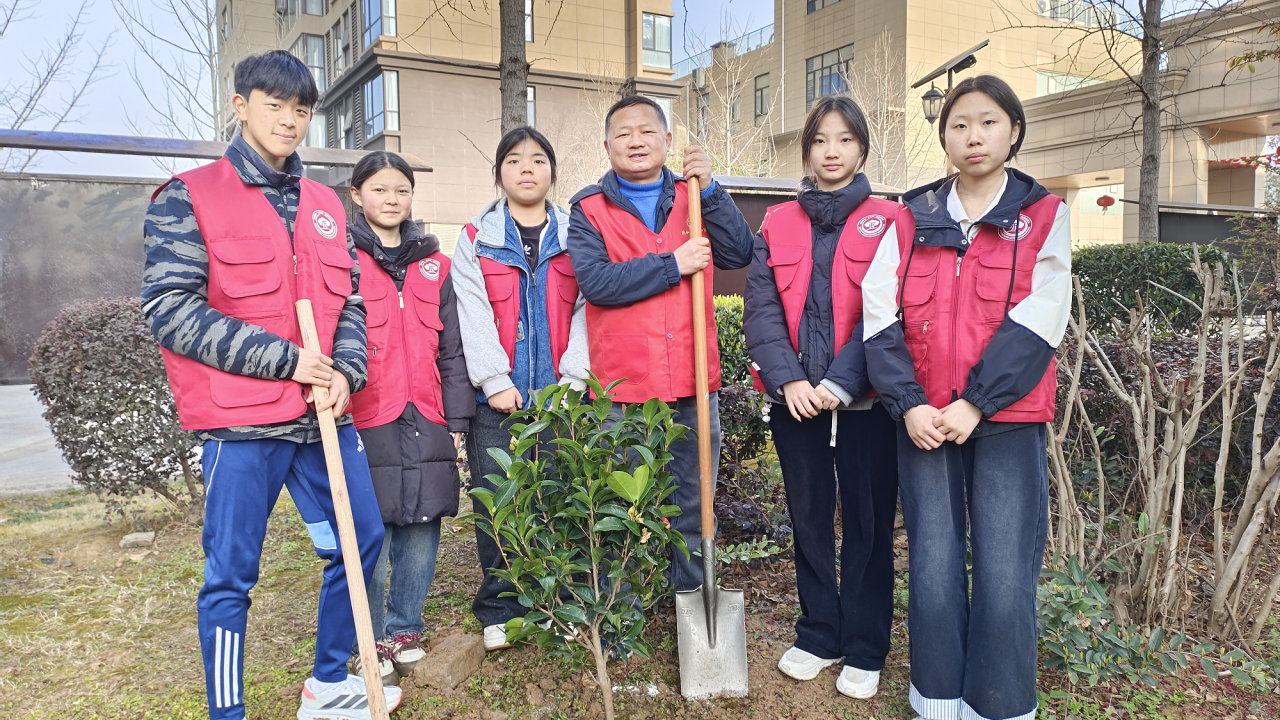 学生代表、青年教师、社区志愿者组成植树队伍,分工协作、默契配合,挖坑、放苗、填土、浇水,每一个步骤都一丝不苟。一番热火朝天的劳作过后,新苗迎风挺立,为社区增添了盎然春意,也让绿色希望在沃土中生根发芽。