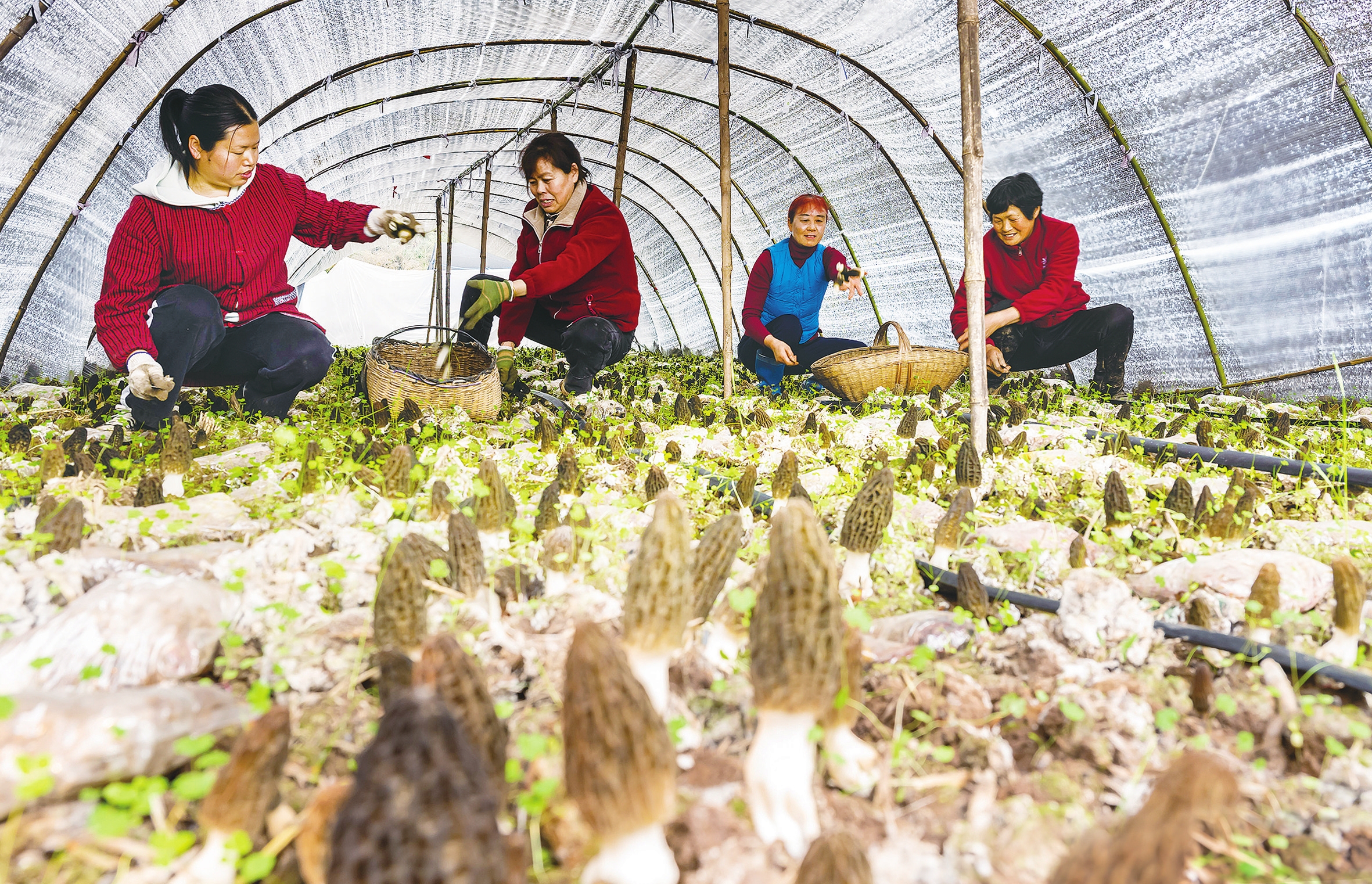 3月14日,远安县旧县镇董家村村民在采摘羊肚菌。