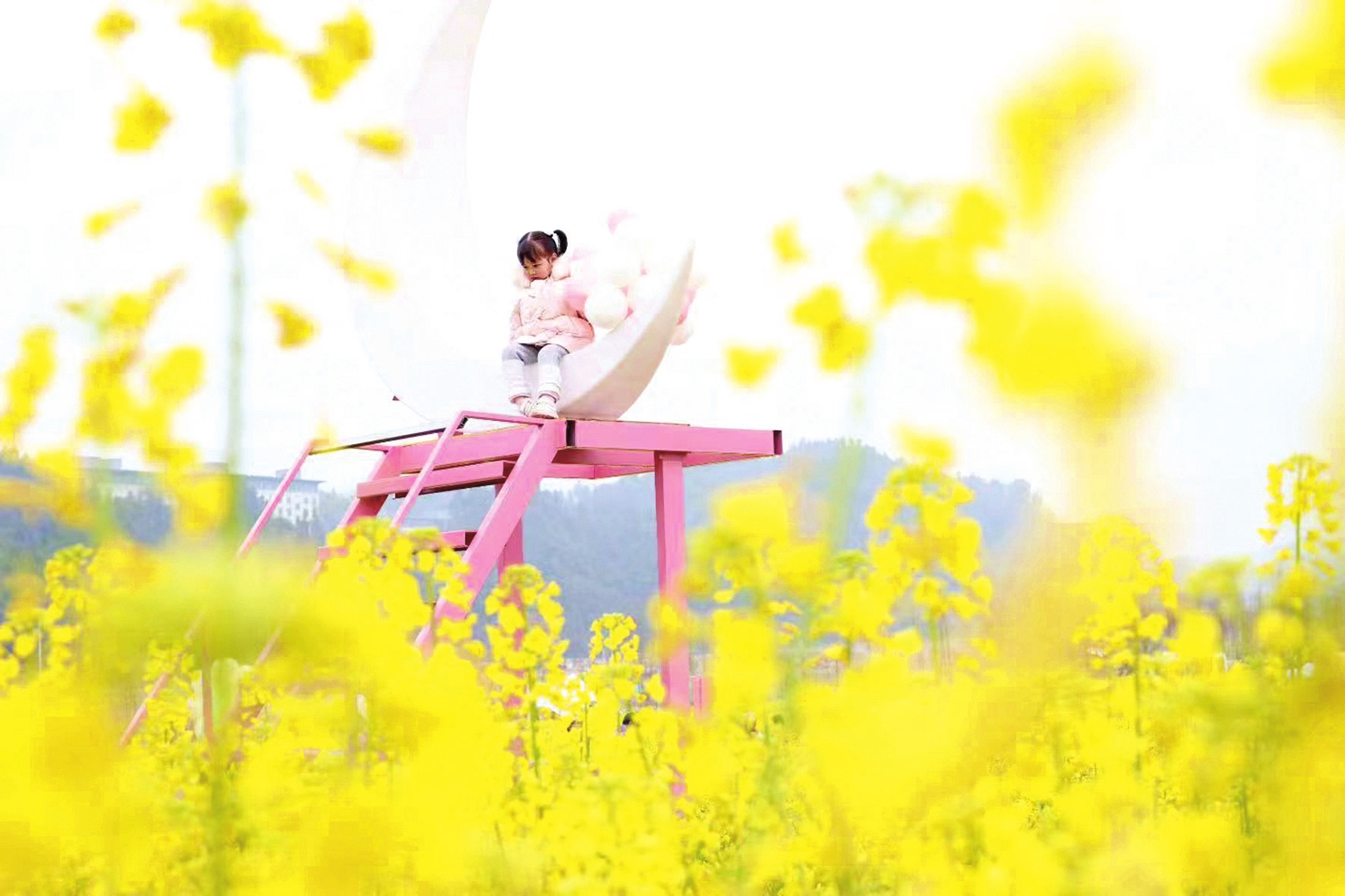 宜昌城区和平公园油菜花盛开,市民赏花拍照乐享春光。(记者黄翔 摄)