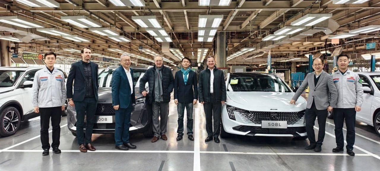 斯泰兰蒂斯集团副董事长罗伯特·标致(左四)一行在神龙汽车调研。 通讯员 供图