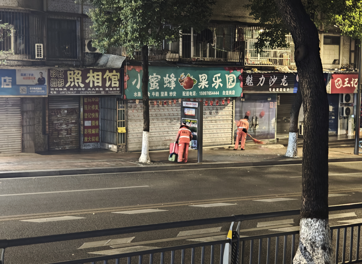 3月17日,凌晨6点,大部分人还在沉睡。宜昌城区胜利四路铁路桥下的街道上,已经有两位环卫工人在清扫落叶。扫帚挥过地面,“唰唰”声远远传来。