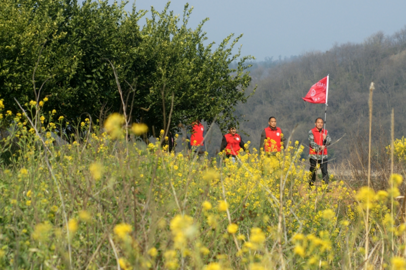 早春三月,马河镇关庙岗村的漳河岸边,村支书老郑带领巡河队员从青翠的橘园果树间走来。