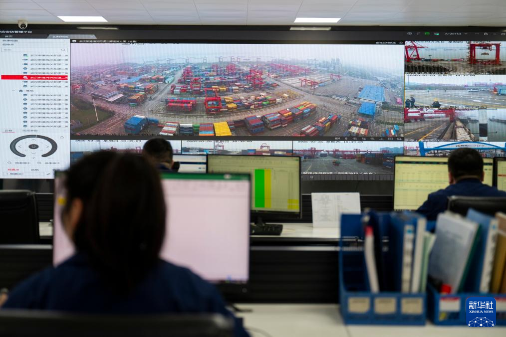 3月26日拍摄的武汉阳逻港中控室。新华社记者 伍志尊 摄