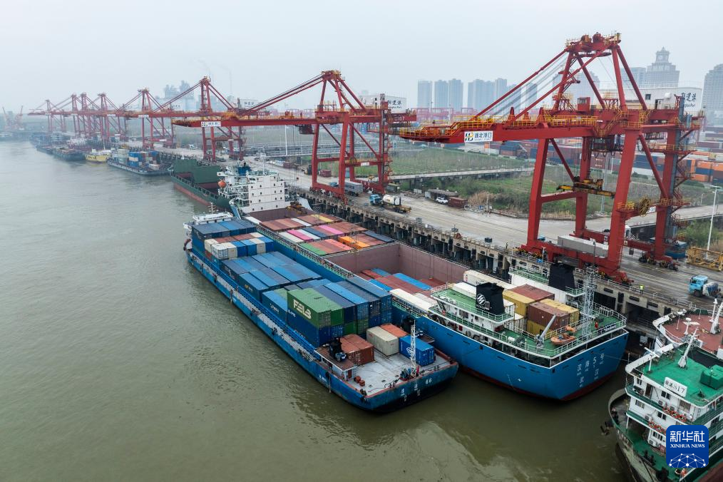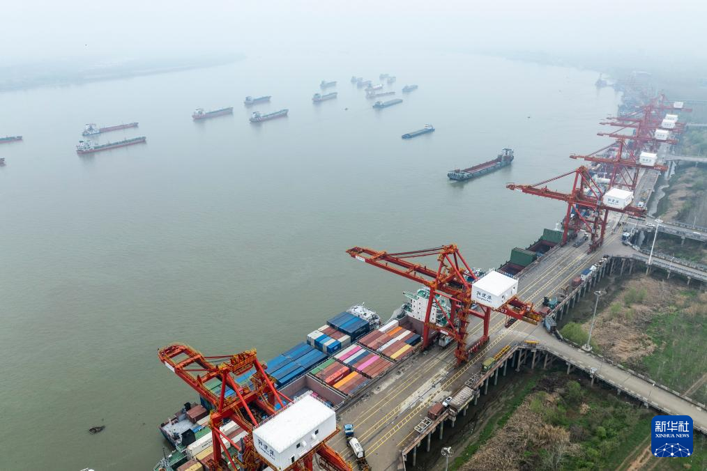 3月26日拍摄的武汉阳逻港。新华社记者 伍志尊 摄