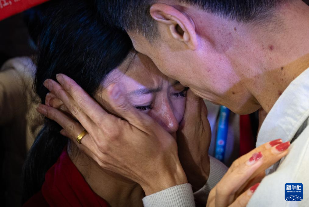 李林、李鑫姐弟俩相拥而泣。新华社记者 肖艺九 摄