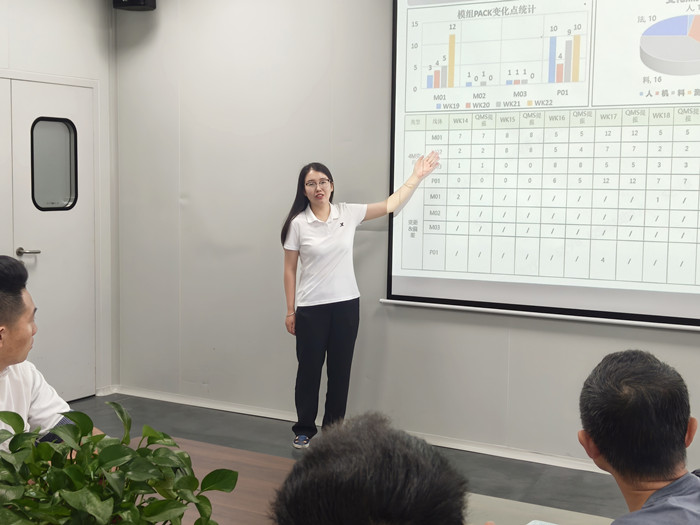 面对S73&S31项目的质量危机,她以“零客诉”为目标启动品质攻坚,牵头推进“品质致胜”专项工作。通过柏拉图分析,精准筛选出电芯机损(41.3%)、制程异物(19.6%)、电芯界面(13.0%)及电芯一致性(13.0%)四大TOP问题点,针对性地切入细化分组、卷芯异物改善、界面优化、机损管控等数十项关键举措,通过对K2/K4进行梯度管控、K2-K4波动监控、双面有胶隔膜切入、动态K值管控导入、制程异物管控及机损改善等方式,全方位、多层次地对项目痛点问题进行改善。