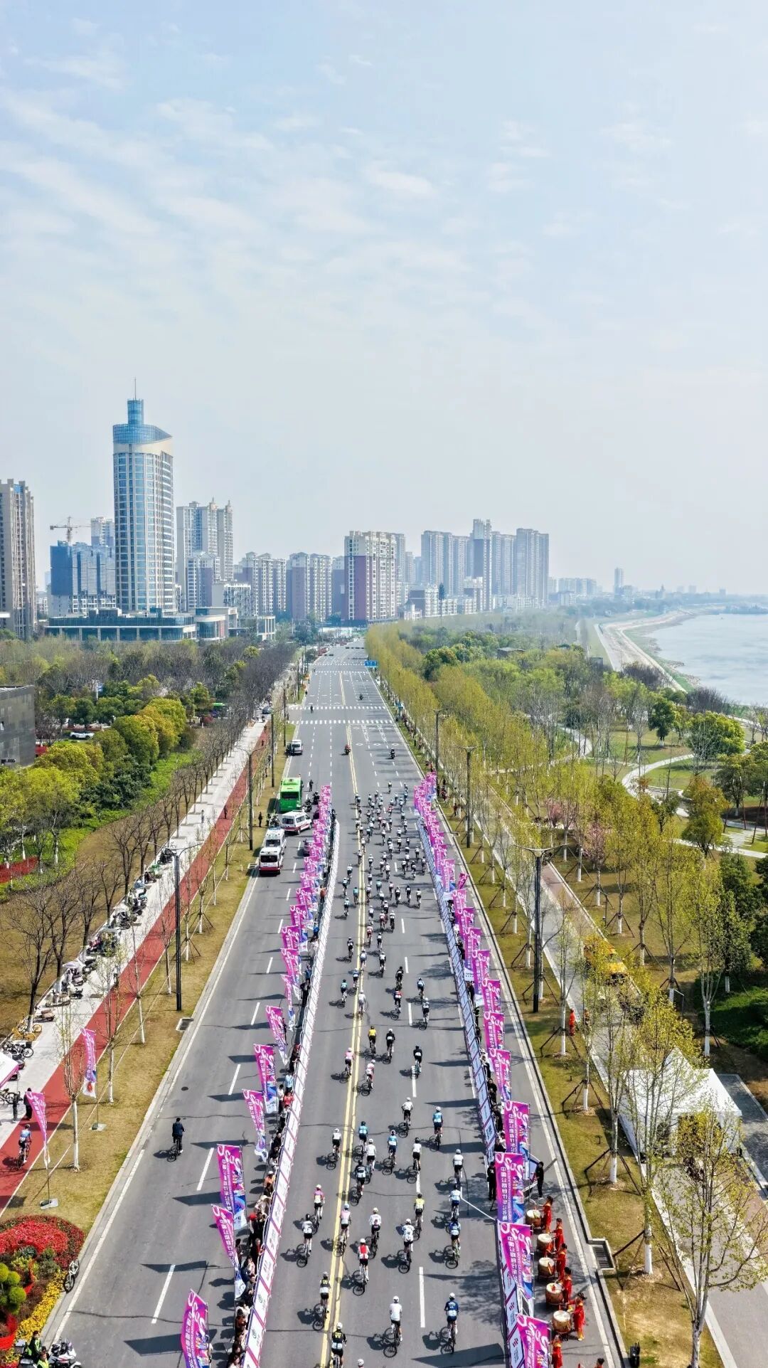 赛道沿江依湖布局,串联起金湖国家湿地公园、滨江风光带与城市核心地标,一路碧波与花海相映,让选手在骑行中沉浸式感受“生态+体育”的独特魅力。这条被长江滋养的“天然赛道”是吸引国家级赛事落地的核心底气。