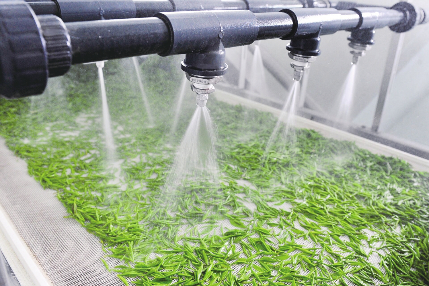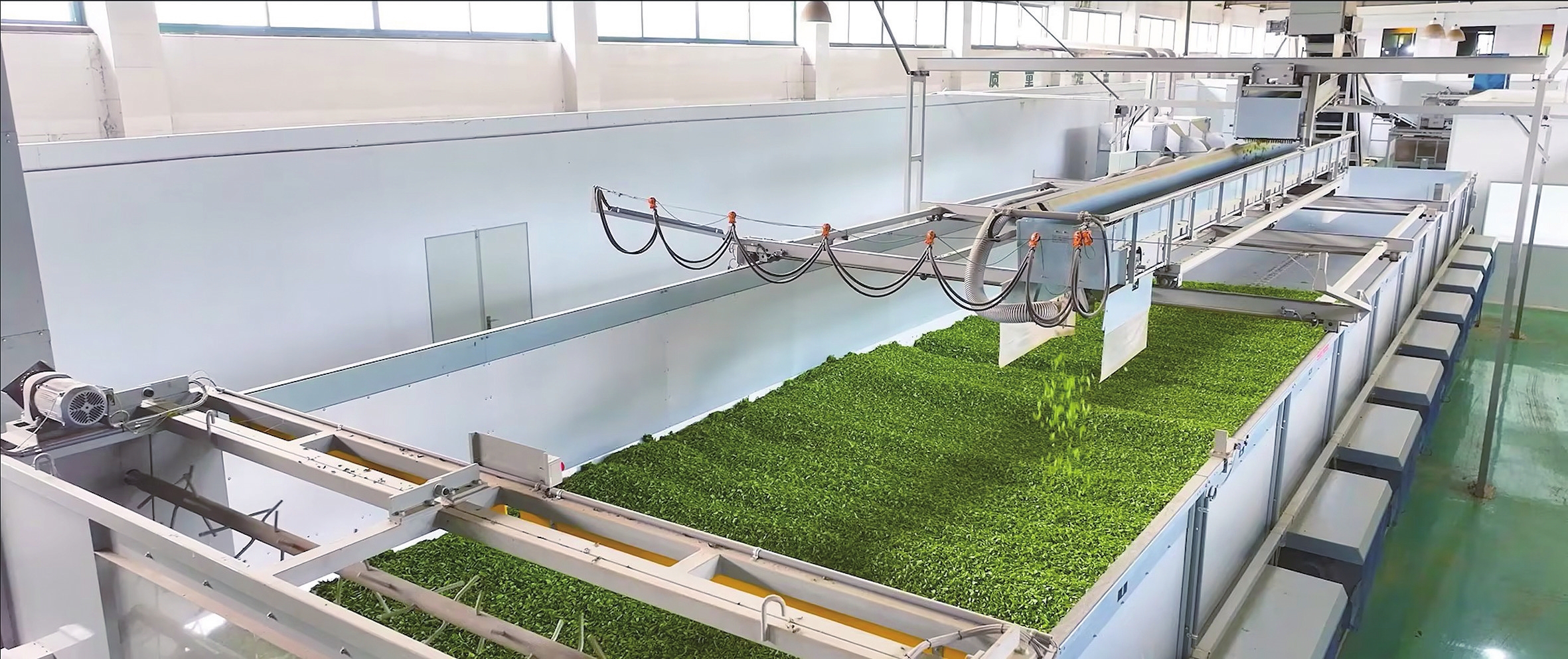 位于夷陵区邓村乡的宜茶集团湖北萧氏茶业“无人工厂”采用智能洁净技术,实现茶叶鲜叶自动化喷淋冲洗,赋能春茶加工。 (宜茶集团 供图)