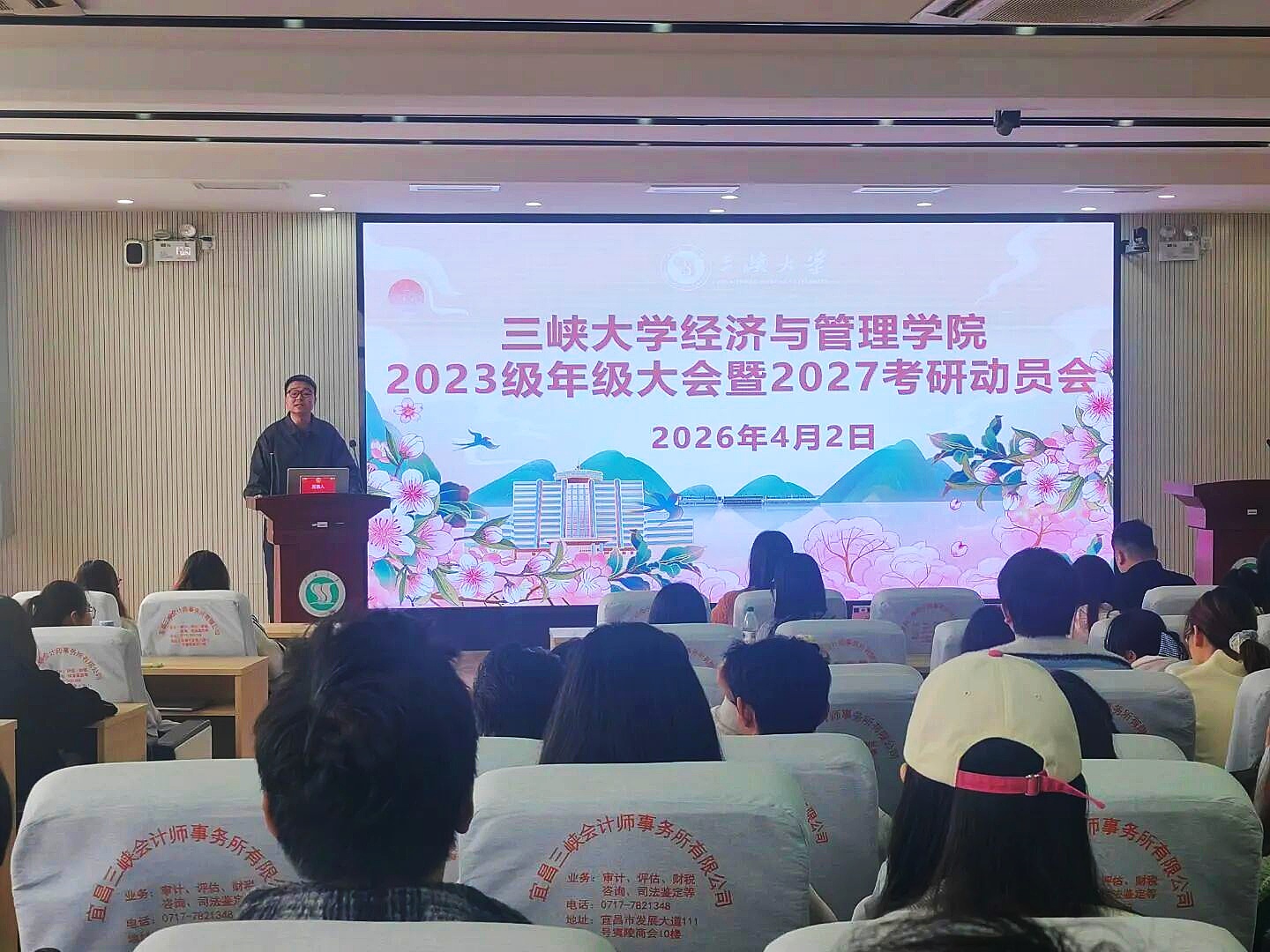 为充分调动学子考研积极性,帮助学子科学把握备考方向、坚定考研信心,4月2日,三峡大学经济与管理学院召开2027届考研动员大会。学院党委副书记徐纯,学院主持行政工作副院长袁亮,学院学生工作负责人李闻钦,2023级辅导员胡春妮等出席本次大会。