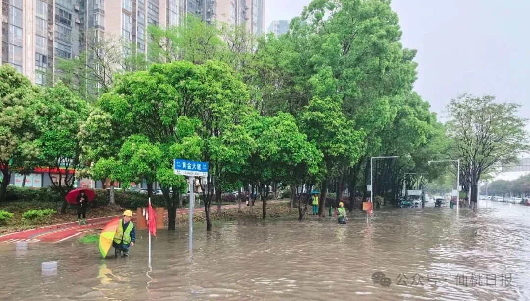 市林业事业发展中心辖仙怡养护公司和公园管理处迅速启动应急预案,由23人组成的应急小分队分5组带领416人的网格人员进行巡查排险排涝,现已扶正倒树61棵,清理断枝36车次,15台潜水泵进行排涝,确保行人安全和道路畅通及苗木损失降到最低值。