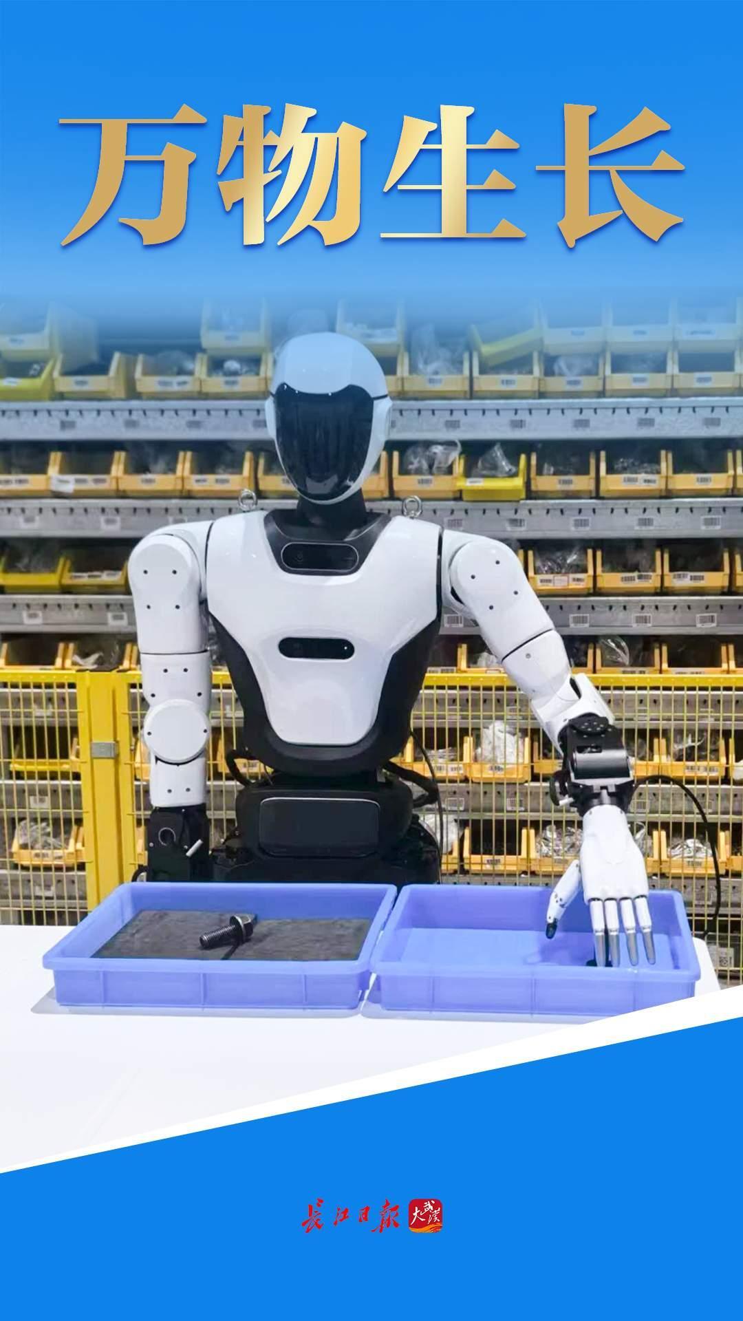 在车谷的汽车智慧工厂生产线旁,华中科技大学丁汉院士团队研发的“荆楚2号”人形机器人已在“岗前培训”,第一课就是分拣物料,一会儿还要培训搬料、巡检、取件。
