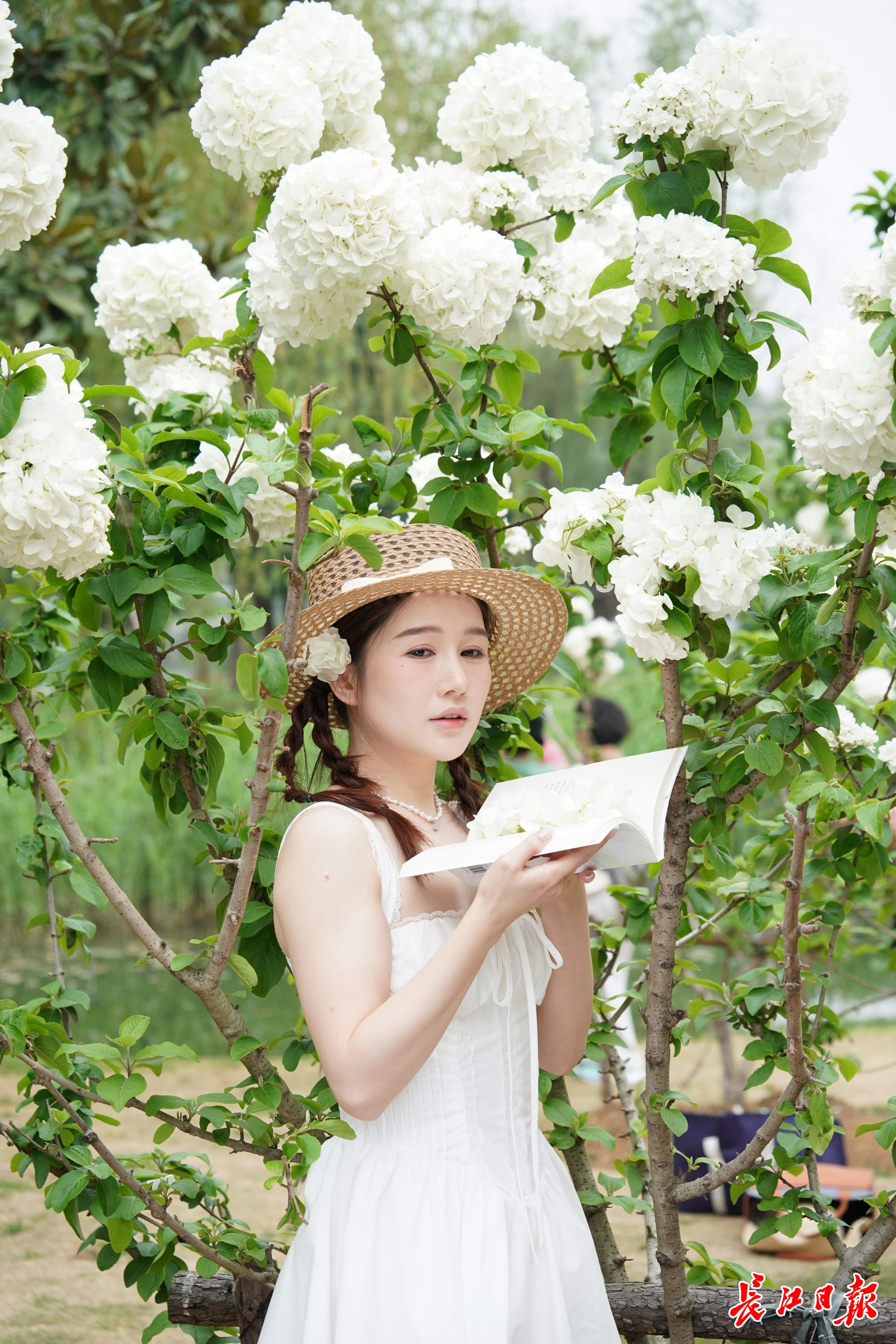 沙湖公园木绣球迎来盛花期,游客漫步花间,感受春日美好。 记者詹松摄