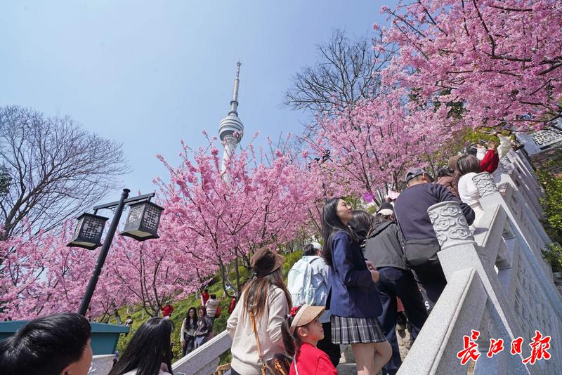 汉阳龟山公园的樱花吸引不少游客前往拍照赏景。 记者苗剑摄