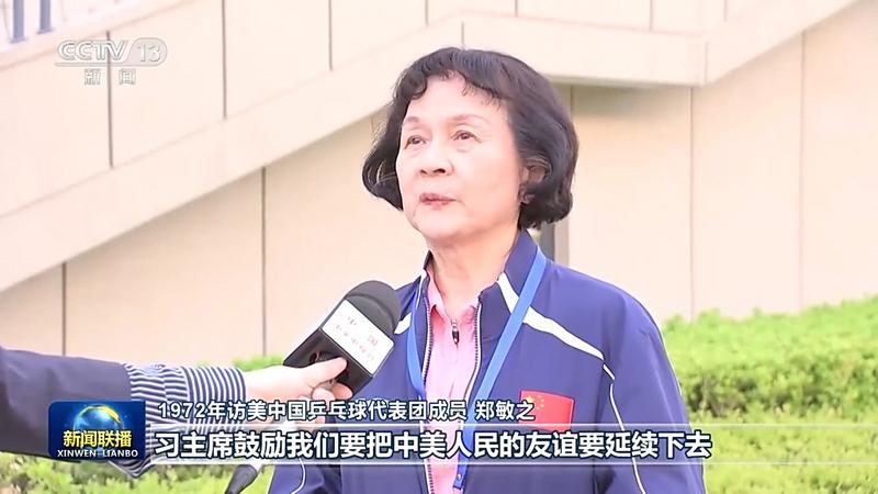 1972年访美中国乒乓球代表团成员 郑敏之:习主席鼓励我们要把中美人民的友谊延续下去,更鼓励我们,我们要把接力棒传给更多的年轻人,我们一定要继续为中美友谊作贡献。