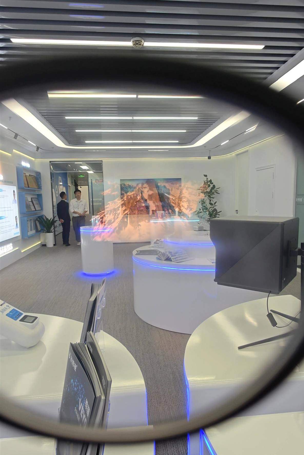 记者在湖北臣博视人工智能科技有限公司看到,一副黑框眼镜看似普普通通,用手轻点眼镜腿,眼前竟出现一块87英寸“大屏”,清晰且色彩斑斓。